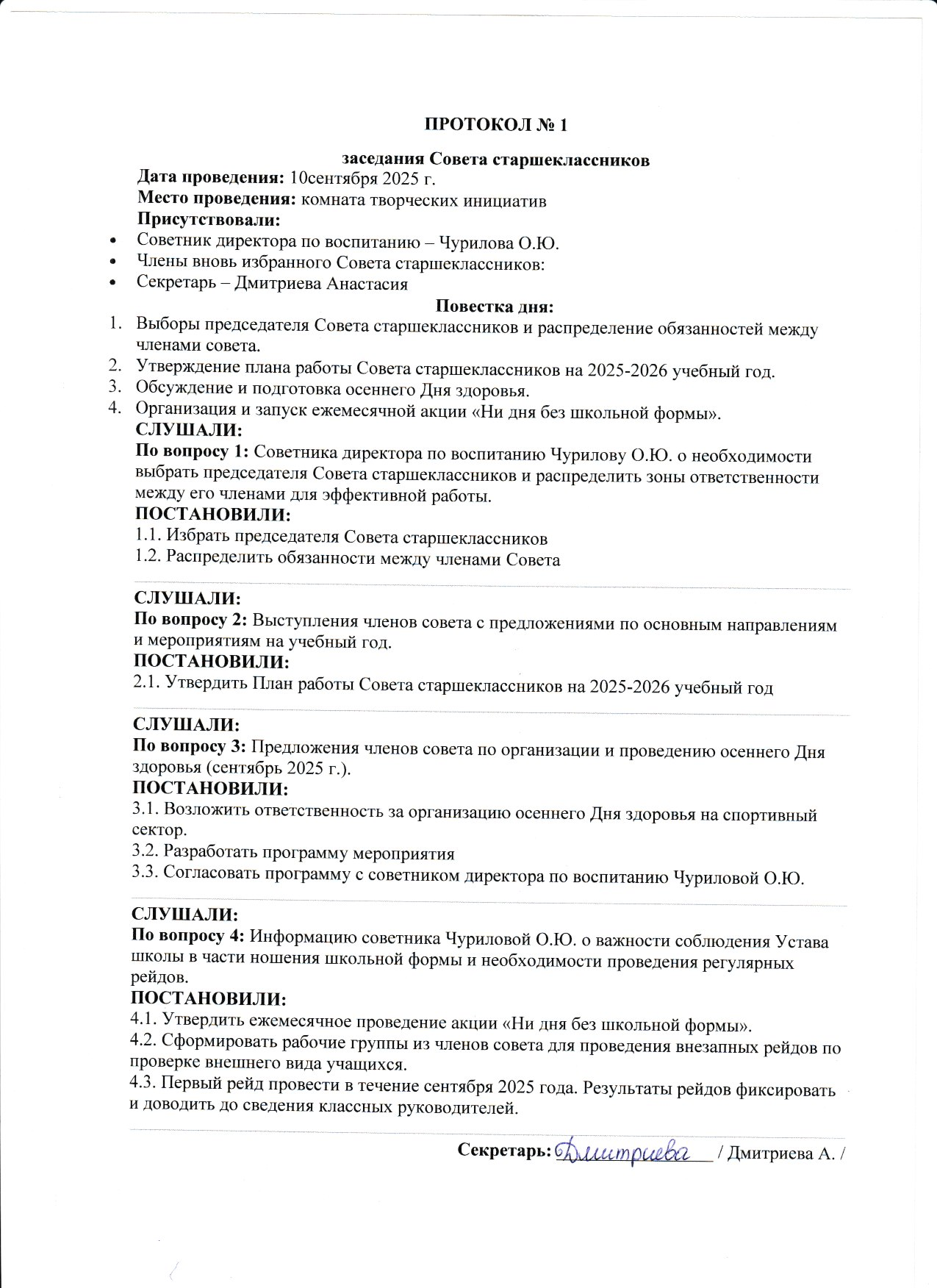 Протокол № 1